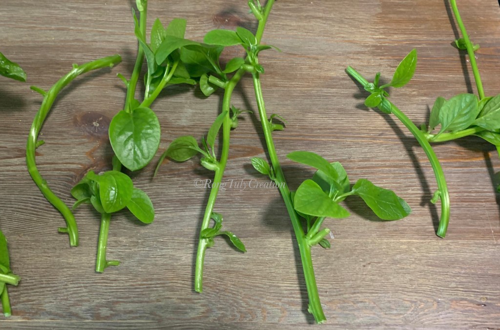 Today’s harvesting is enough for 2 servings and some extra for re-potting. I have saved a few stems to replant – I put them some directly in soil and some I kept in water to see if any roots come out.