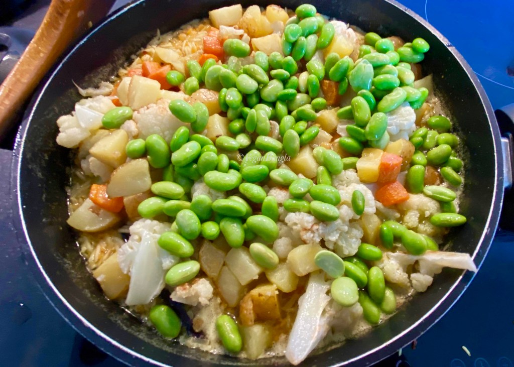 Previously I have shared traditional Khichuri (খিচুড়ি) recipe which is one of the most favorite of all comfort food among Bangladeshis, especially in the rainy days. Yesterday, it was raining in Copenhagen, so I decided to make Khichuri, but with a slightly different recipe. Its called Shobji Khichuri or Vegetable Khichuri, where veggies are cooked together with rice and lentils.