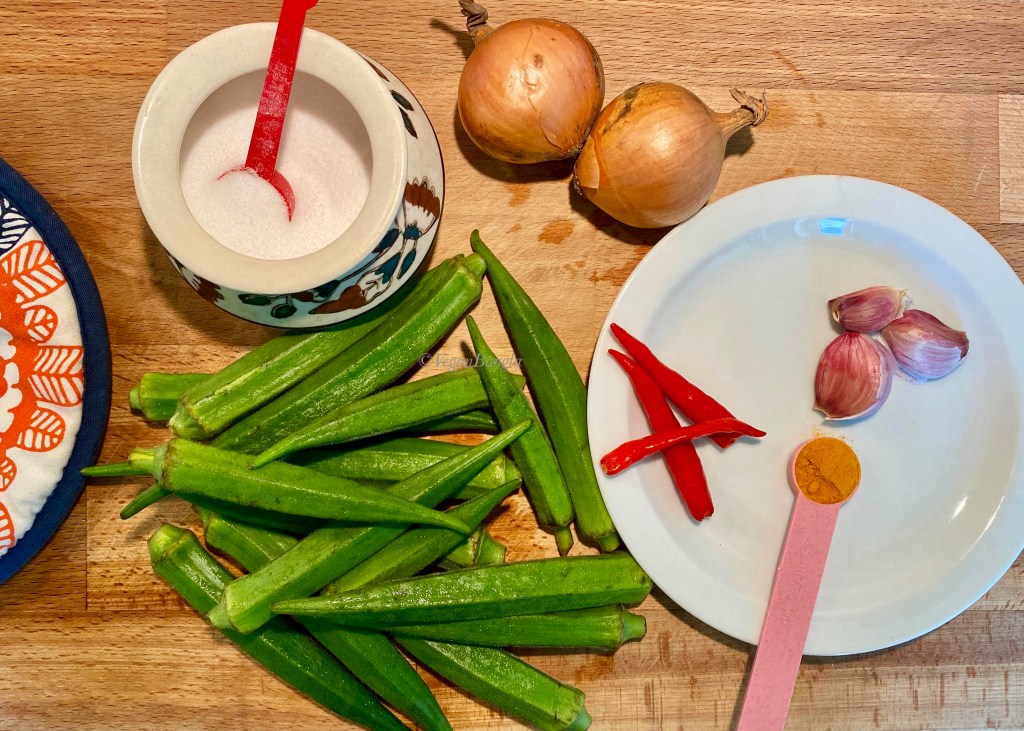 You need only Okras, onion, garlic, chili, salt, turmeric powder and oil! I am not sure if I can remember any Bangladeshi recipe with the lowest amount of ingredients. However, I promise this will be the most delicious recipe of Okra you will ever taste!