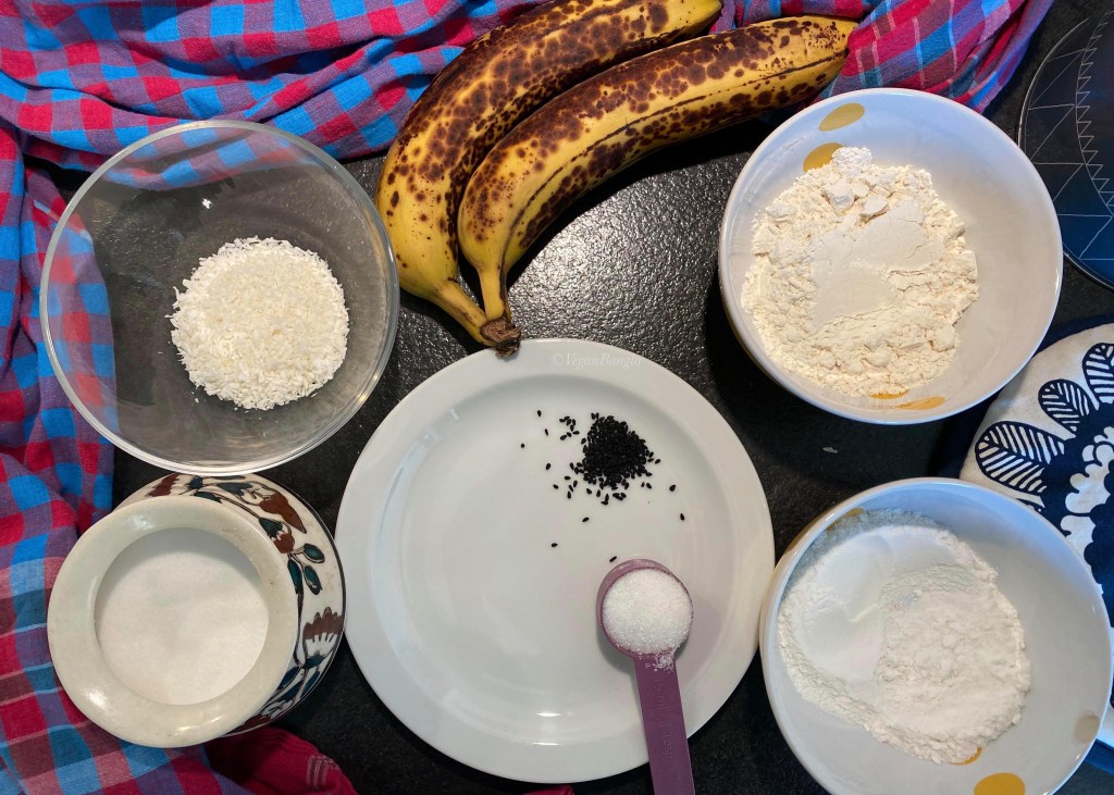 | Ingredients: 2 overripe bananas 100g Rice flour 250g Wheat flour 1tbsp Sugar – optional 1/4 tsp Salt 100g Coconut flakes 1/2 tsp Cinamon powder 1/2 tsp nigella seed(black cumin) 100ml Vegetable Oil |