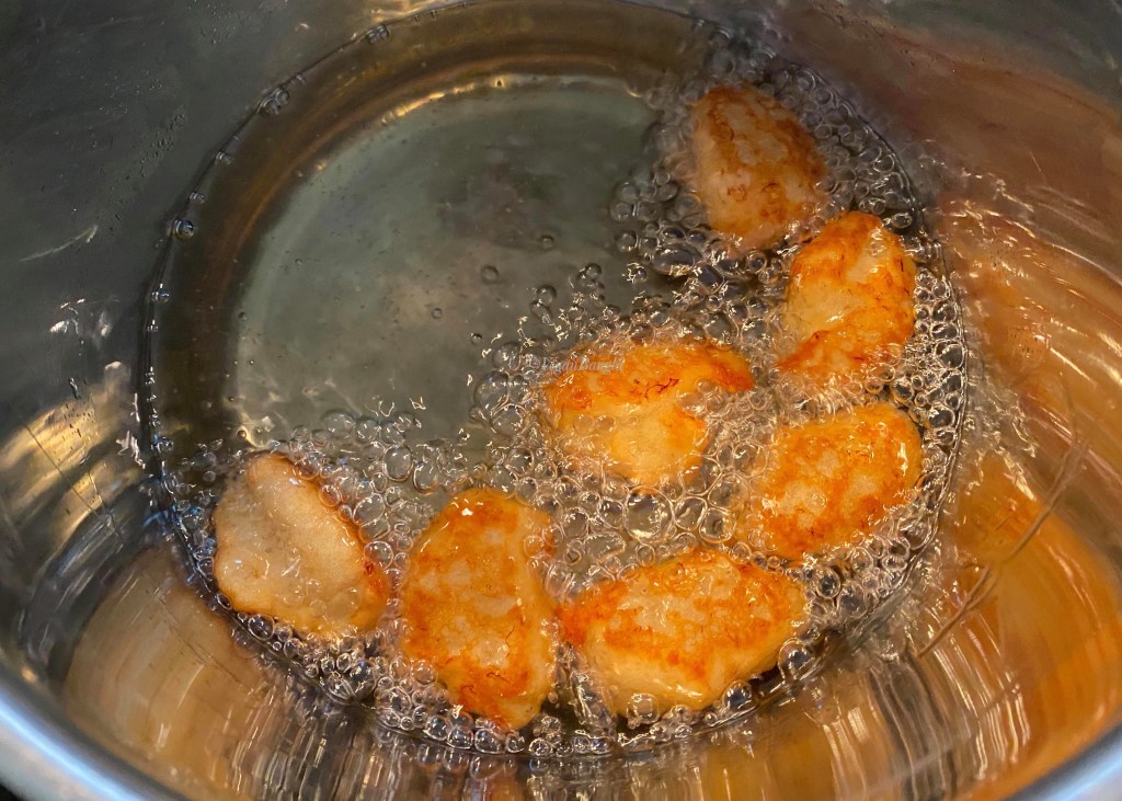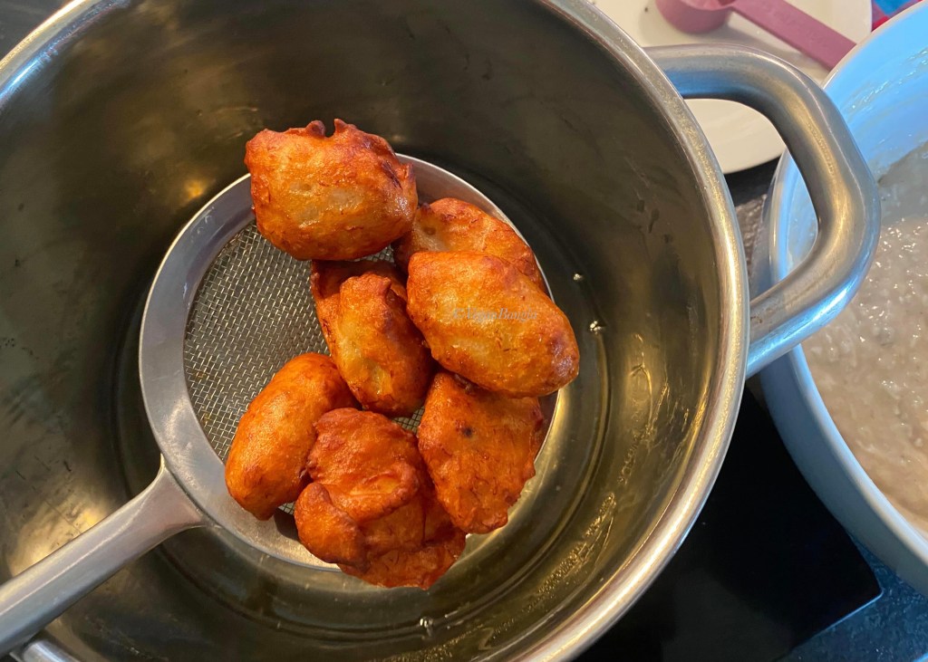 The donuts aka Pitha’s fragrance is now all over my kitchen! I am frying the last batch and eagerly waiting to devour them!