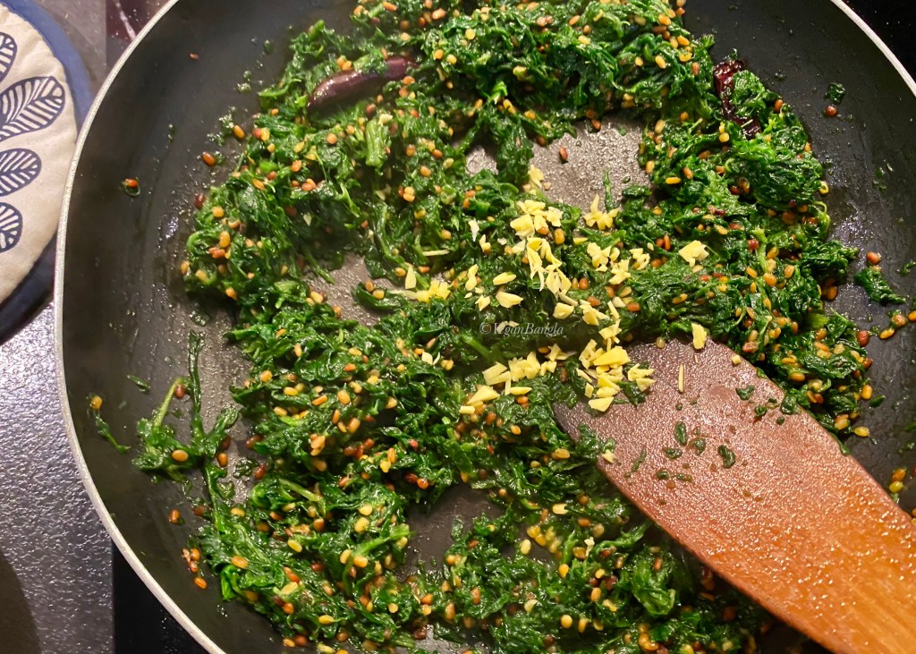 So, here’s our grandma style spinach with muug daal or Palong Shak er Ghonto (পালং শাক এর ঘণ্ট)! This dish goes best with rice but as always, you can eat this with your favorite carbs!