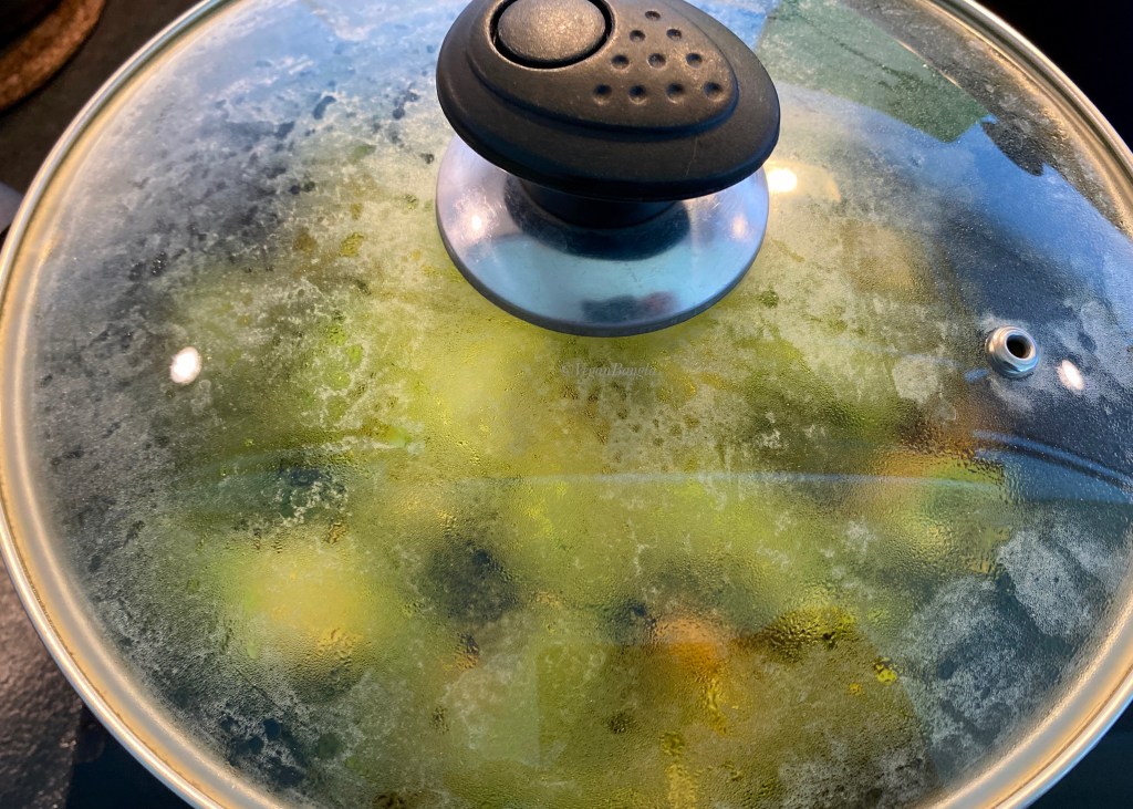 Now, chichinga released lots of water, so I am not adding extra water. I will just cover the pot with a lid and let them simmer in low heat for about 10 to 12 minutes.