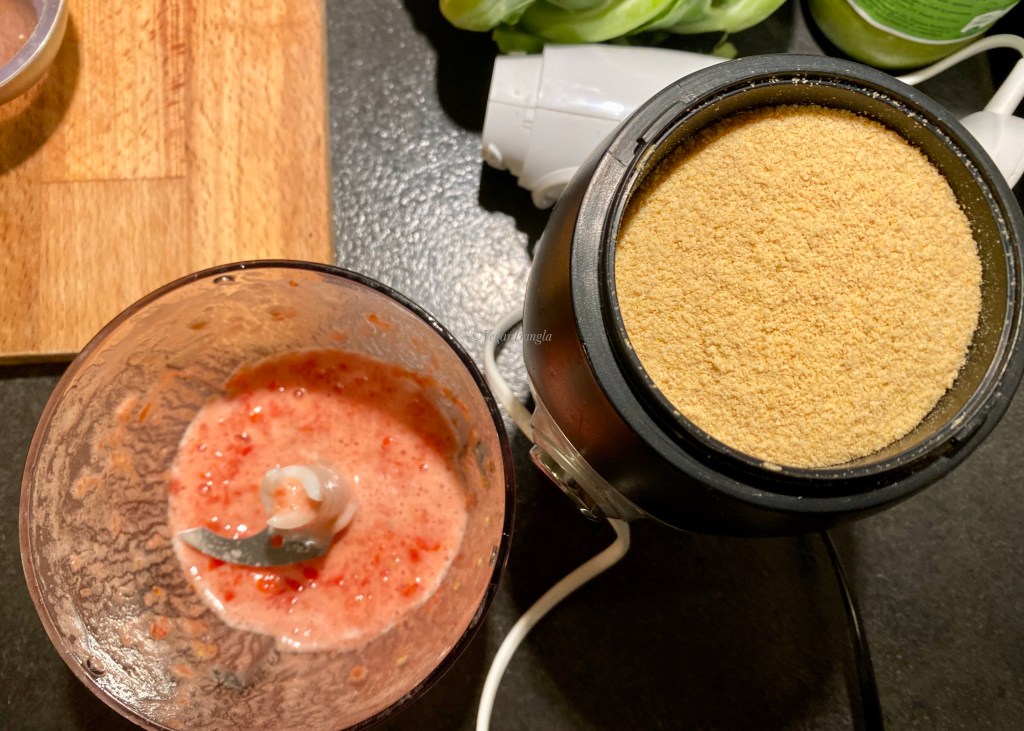 While okra was being fried, I made a paste of tomatoes and ground some mustard seeds. The better option would be to use puree or paste, both for mustard and tomato. Since I had none of those, I improvised!