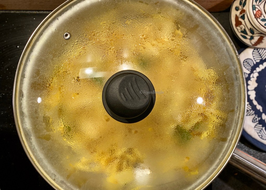 I uncovered the pot after 10 minutes. Parsnips should look translucent and thoroughly cooked by now but I also check if there’s any uncooked parsnips left. However to make sure, I stir fried them for two more minutes, also to get rid of extra moisture.