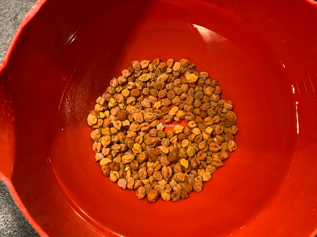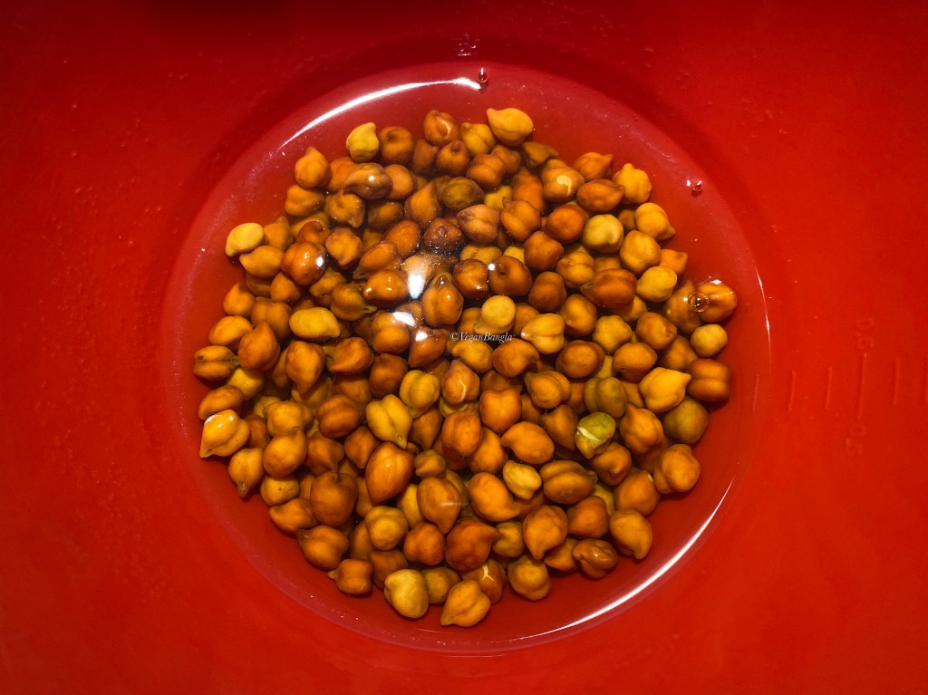 I soaked 100grams of dry chickpeas overnight. It’s great to soak any dry beans before boiling them then it gets equal amount of water content and become soft easier. The more you soak, the more soft it gets, so always better if you can soak them overnight. Then I washed them couple of times and start boiling them with some salt, while I prepare the veggies.
