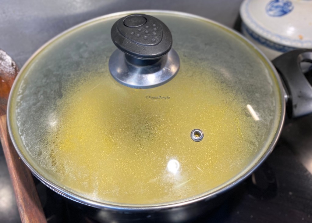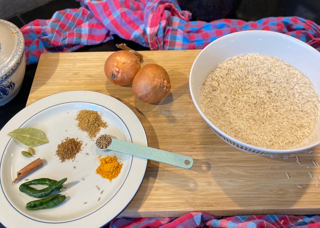Few days ago, the Muslim people in the world celebrated one of the their biggest religious festival – Eid ul Azha. It is usually celebrated by sacrificing animal and sharing the meat with others. That’s why it is bit tough to eat something vegetarian, let alone vegan during Eid festival. But today I am sharing a vegan recipe with you which is eaten in my in-laws hometown in the morning of the Eid day. It’s called Chal Biriyani or Spicy Rice. Actually this recipe does not have anything to do with traditional biriyani, it does not contain most of the spices of biriyani. However it taste simple yet delicious and you can eat it with any veggie fry you like. I have learned this recipe from my sister-in-law, who is from same hometown (Kazipur, Sirajgonj). Many people cook the same recipe with beans but today I am cooking what I have learnt from my in-laws house.