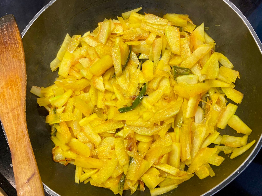 Review: They tasted like green papaya bhaji and it was really tasty. I will definitely cook this more!