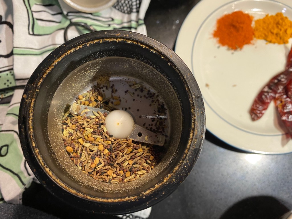 I dry ground mustard seeds and paach phoron (separetly) in a coffee grinder. You don’t need to dry toast them before grinding.