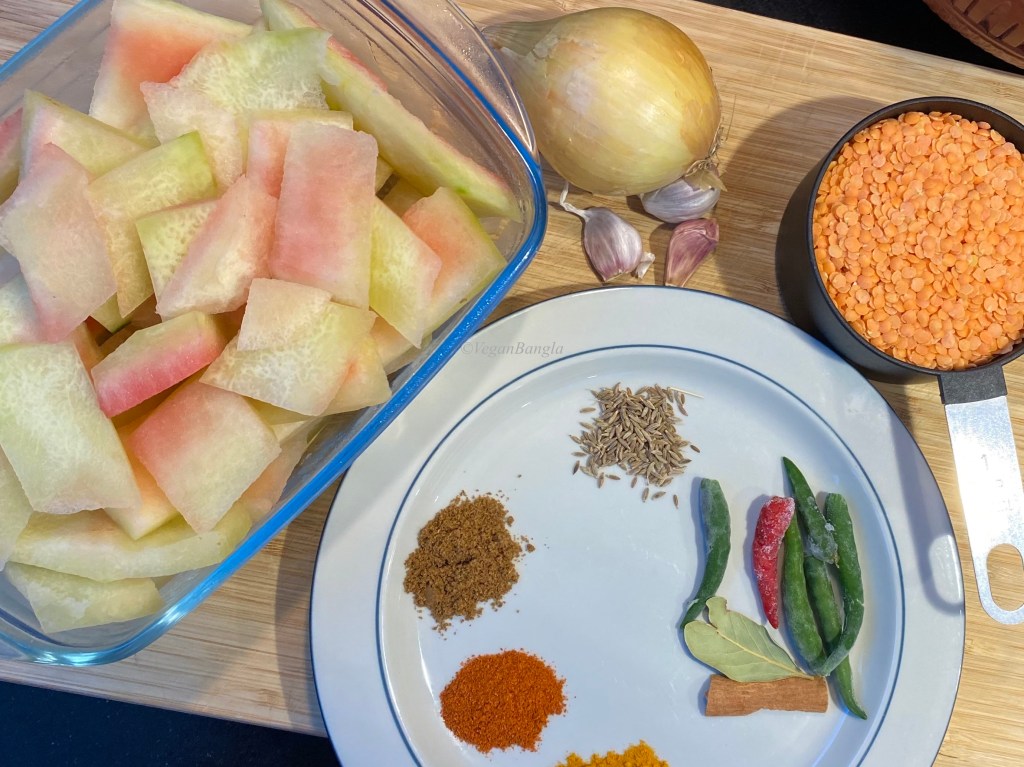 Here comes another recipe with watermelon rind! Previously I made bhaji with it but this daal turned out to be more delicious than bhaji!