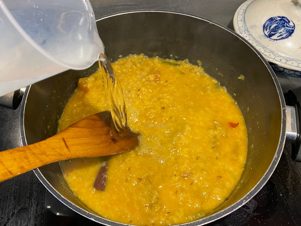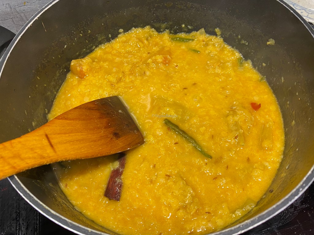 I had not added extra water yet, to ensure proper mixing of spices with daal.