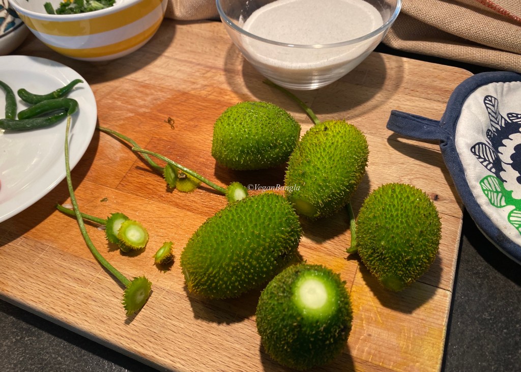 Spiny gourd (Momordica dioica) as we Bangladeshis call it Kakrol, looks and taste very different than many other vegetables in Bangladesh. It is not bitter but taste like cucumber with texture. There’s many recipes of Kakrol but today we are making the stuffed version.