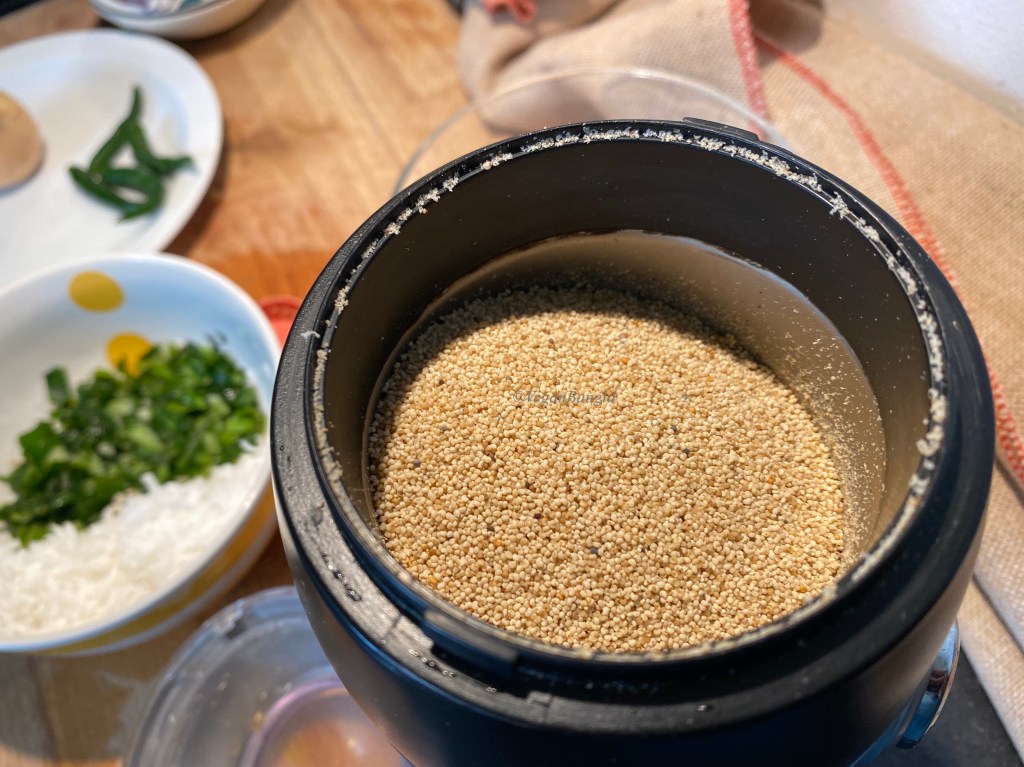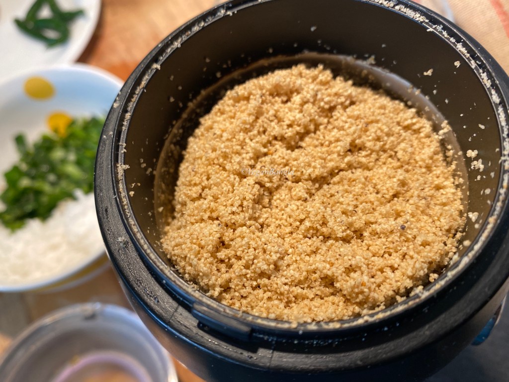 Meanwhile, we need to make a paste of poppy seeds. I have used a coffee grinder, as we need to make a dry paste. If you have a good old style Bangladeshi mortar pestle, then make a paste with it. Otherwise it is not easy to blend this kind of small seeds.