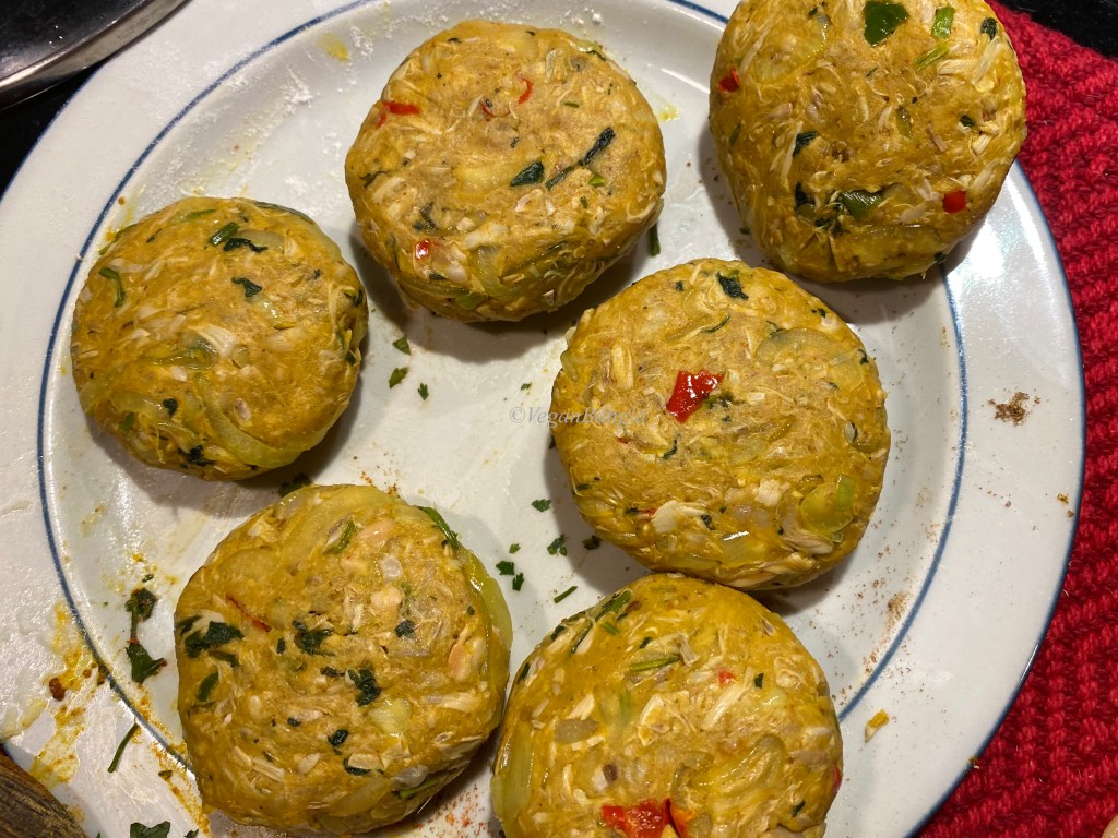 | Recipe: Green Jackfruit Patty Prepping time: 20mins, Cooking time: 15 minutes |