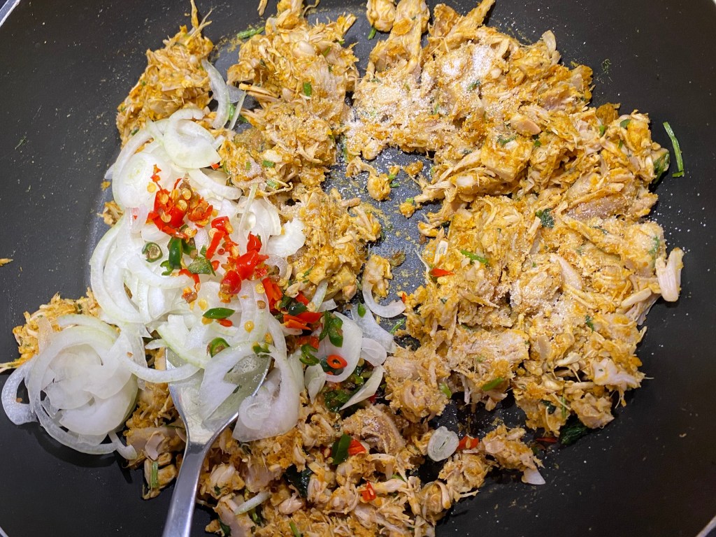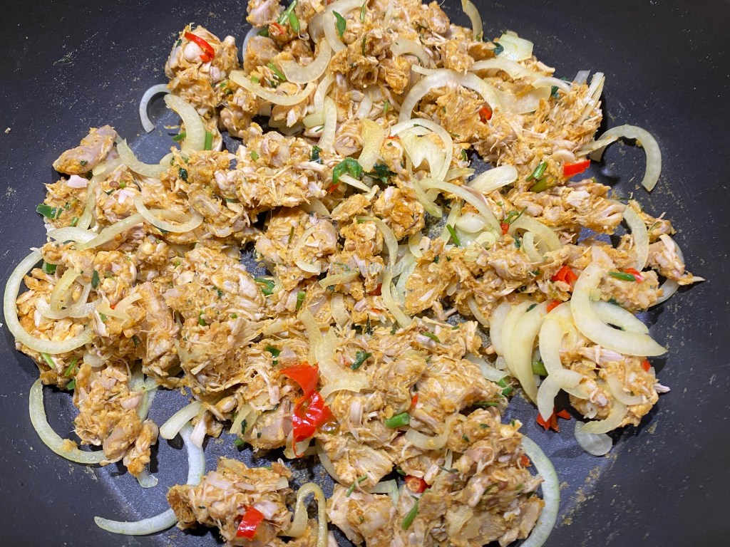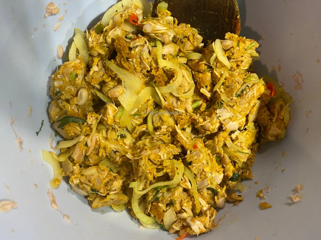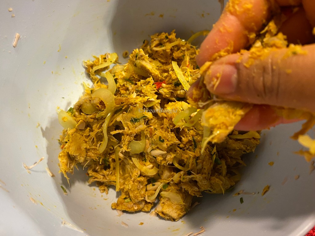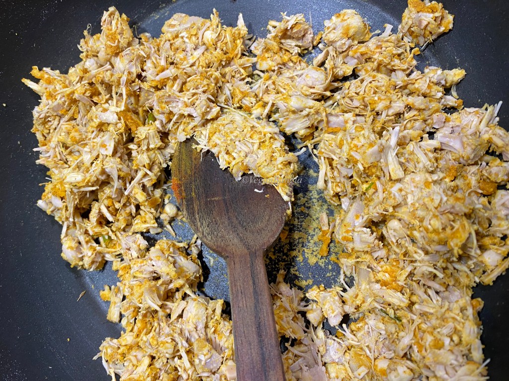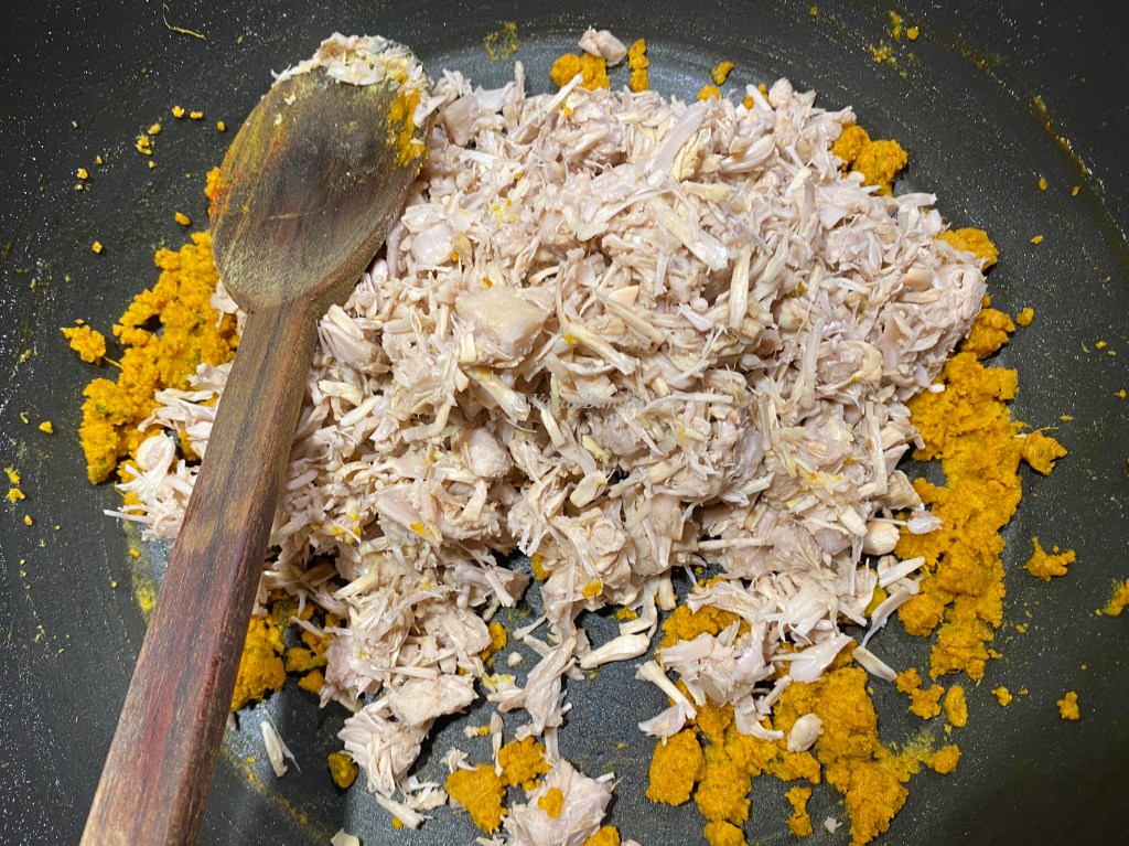 I added boiled jackfruit to the spices mix. This step will take a little patience, as you have to mix the everything very well.