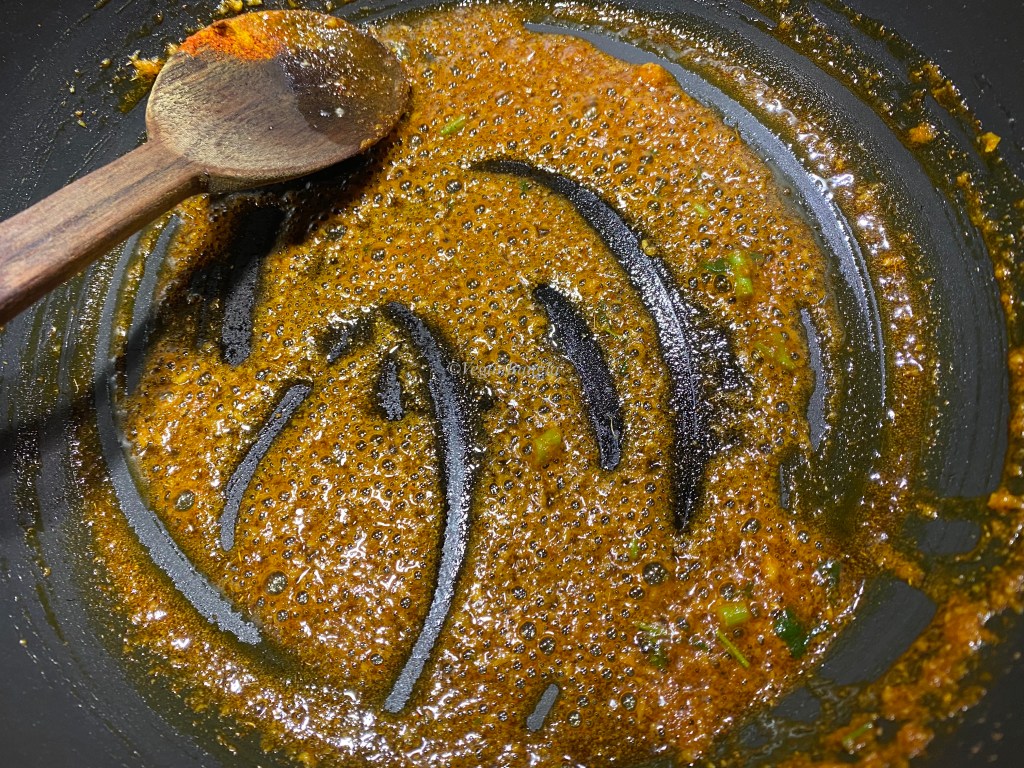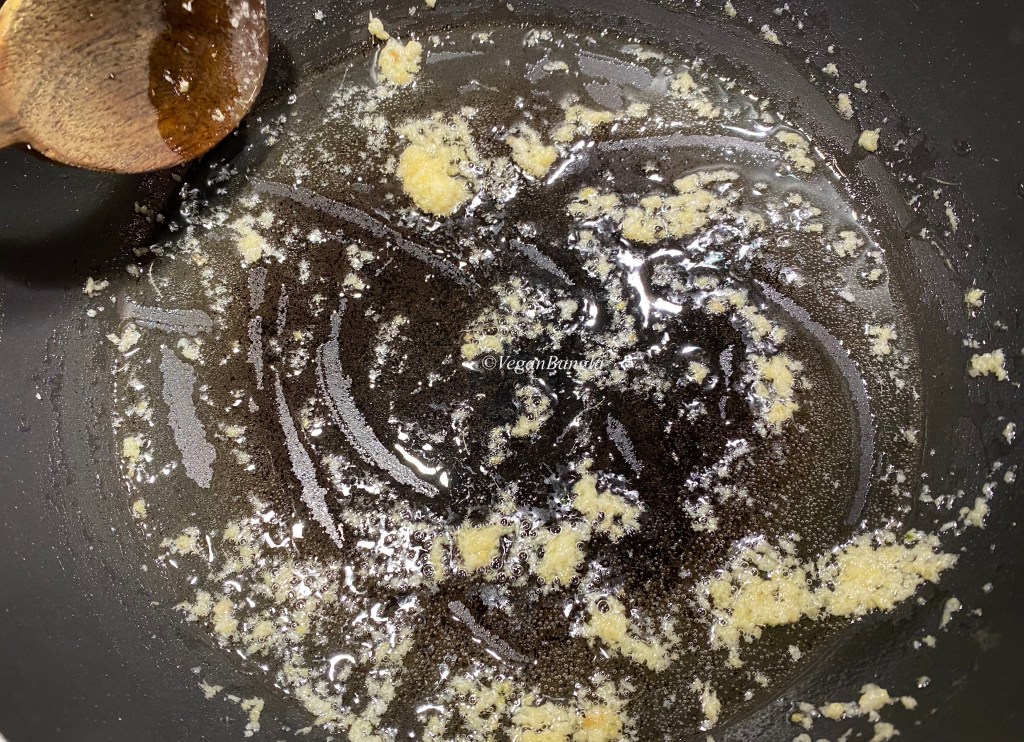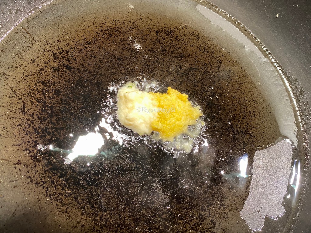While preparing jackfruit, I took a pan to saute ginger garlic paste. This is to prepare the spice mix for jackfruit patty. I sauteed ginger garlic paste until the raw flavor is gone.