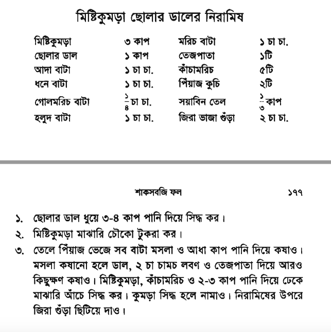 Finally to honor Siddika Kabir, I have put the picture of recipe here from the book. It is in Bangla but I will translate the exact recipe for you in the table below.