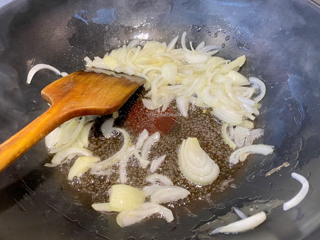 I fried the spices for a few second in medium temperature and then added water to cook the spices.