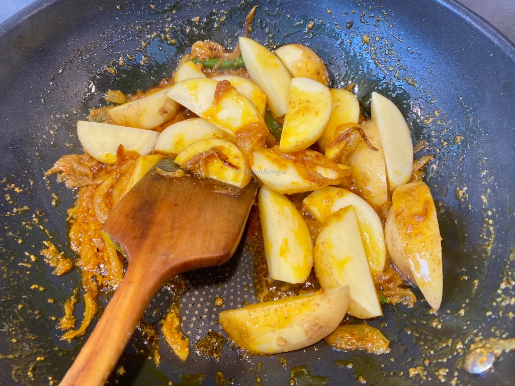 Towards the end, you can add fresh coriander leaves (if you like it) to bring the real Bangladeshi winter curry taste!