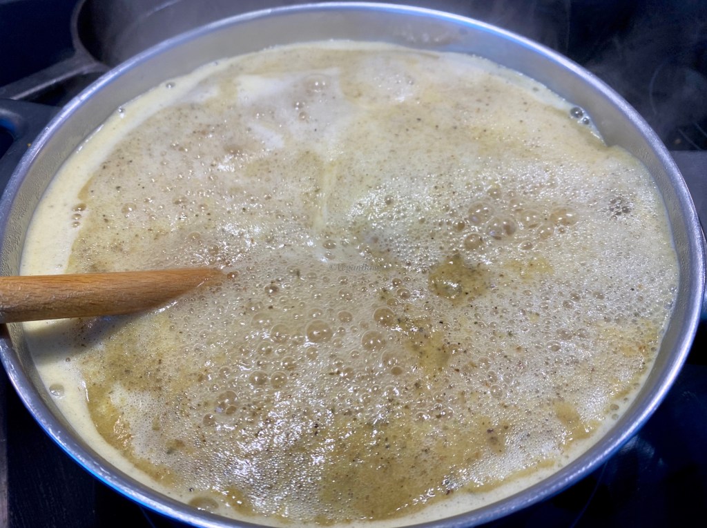 I mixed everything very well with water and put the mixture in medium high heat. It is important to keep an eye on the pot as it tends to get boiled over.