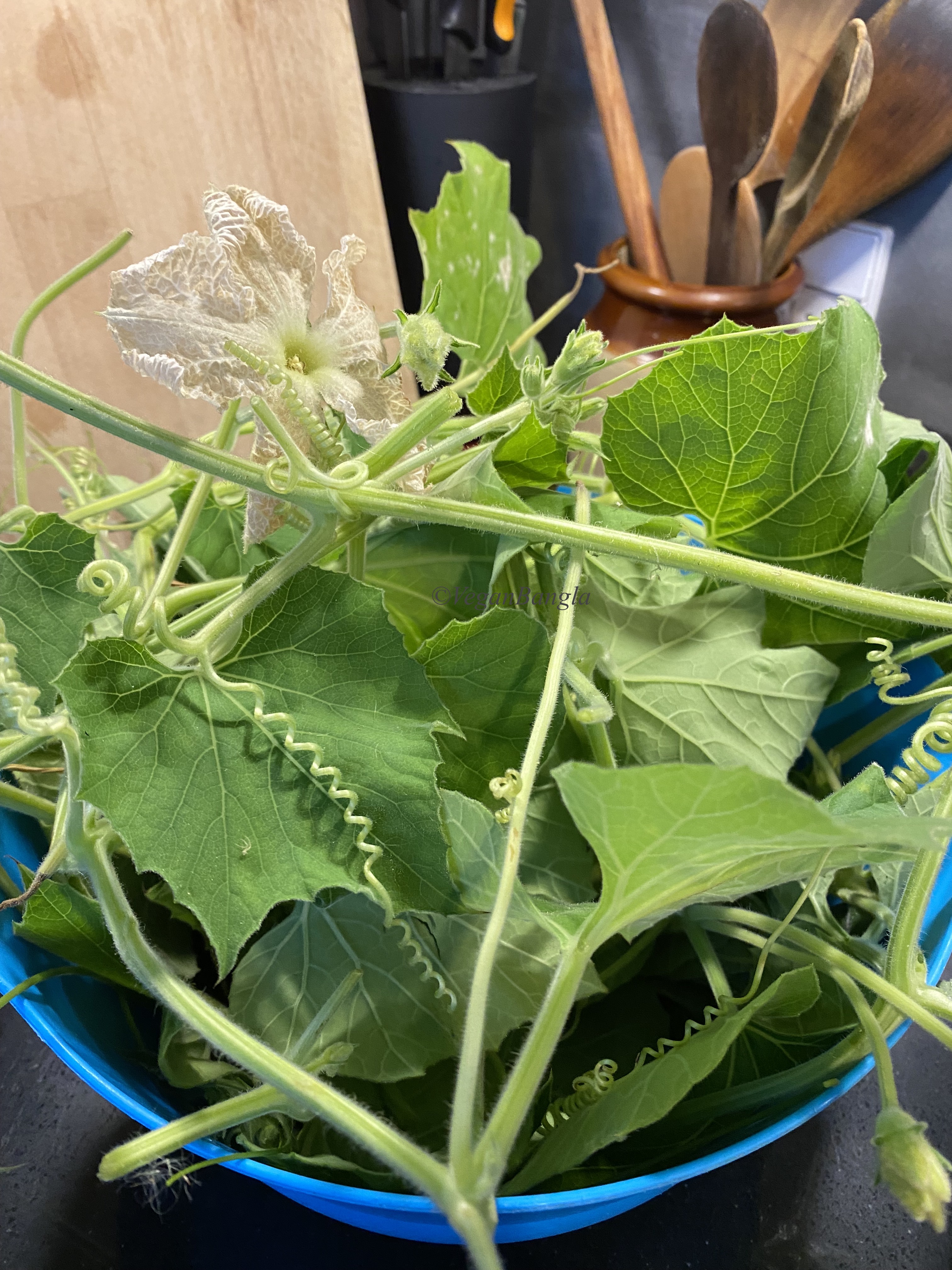 This summer I grew a lot of bottle gourd leaves in my balcony and I am so thankful for this! Today I am making the second vegan recipe of bottle gourd leaves, recipe received from my beloved niece Nova. The recipe is called Lau patar bhorrta or the spread of bottle gourd leaves. It is very easy and simple recipe, often done in rural areas.