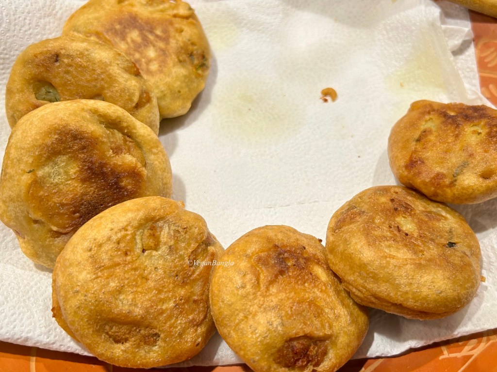 I fried them until both sides were golden brown. When done, I kept them on kitchen tissue to soak extra oil.