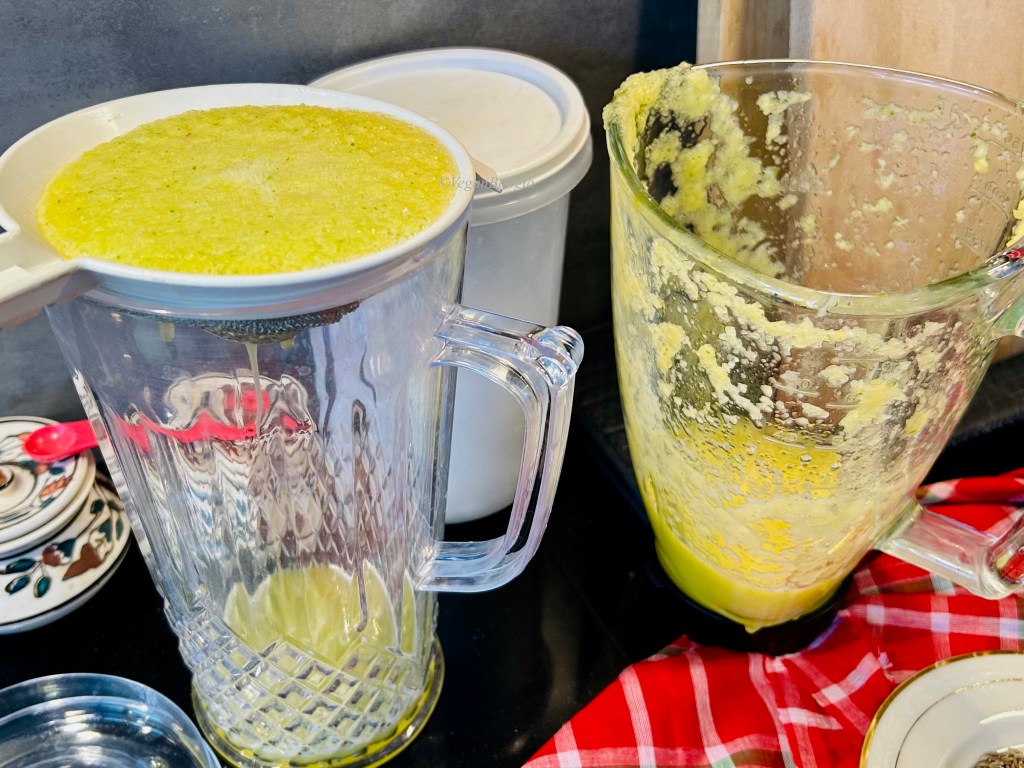 After done with blending, I sieved the whole portion. This way we get a smoother texture and you won’t get any bits of mango/chili/coriander while drinking. After separating the juice from thick part, I added bubble water with juice to give it a mocktail vibe. You can add normal water too. I adjusted the sweetness and thickness of the mocktail accordingly. You can always adjust the taste by adding more sugar/water/lemon juice.