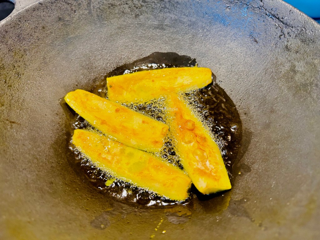 This is how the simple yet marvelous potol fry looks like. The crunchy texture of potol give you an unique taste – I guess that’s why Bangladeshis love Potol so much!