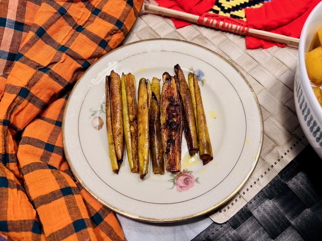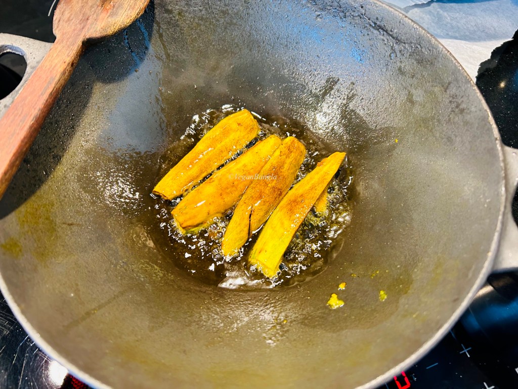 I flipped them halfway and fried in medium heat until the potols were golden brown and curled up.