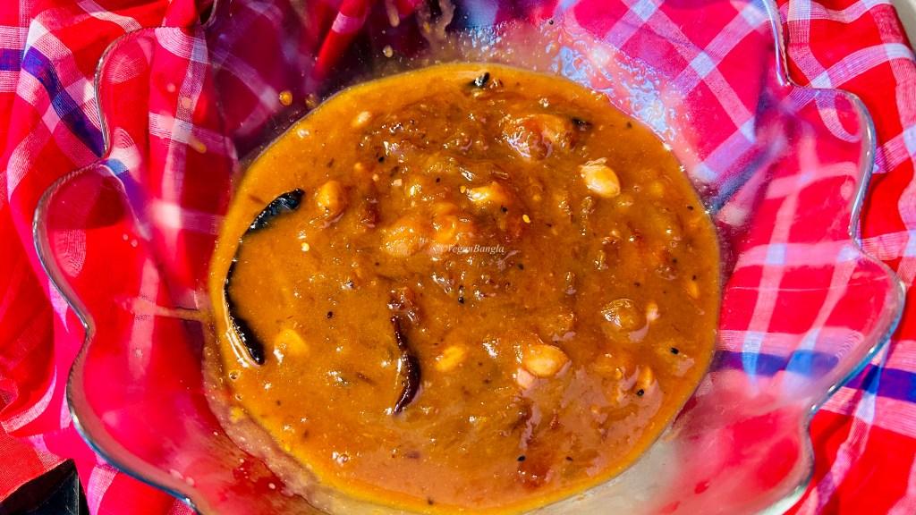 I used almost the same ingredients like before – except for jaggery, I used sugar. The holy trinity of Bangladeshi Bangali pickle is paach phoron, mustard oil and chili. But if you only have paach phoron, then you can omit other ingredients like mustard oil and jaggery and still make the pickle taste similar to homemade Bangladeshi pickle!