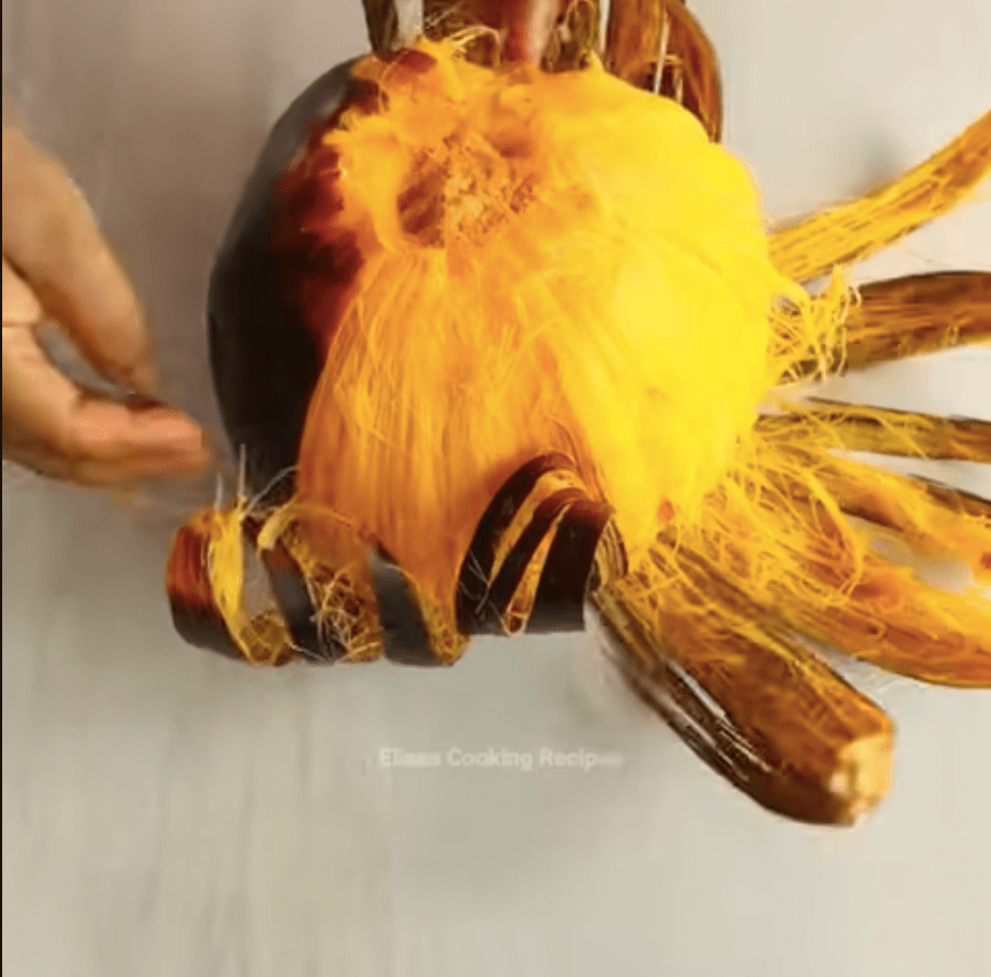 The whole fruit looks like big brown round canon balls which has a thick leathery skin and if you open it,there are fibrous threads surrounding three stones. The fibers contains lots of juices or pulp which needs to get extracted. I took the Elisas video to take to picture for explaining the process.