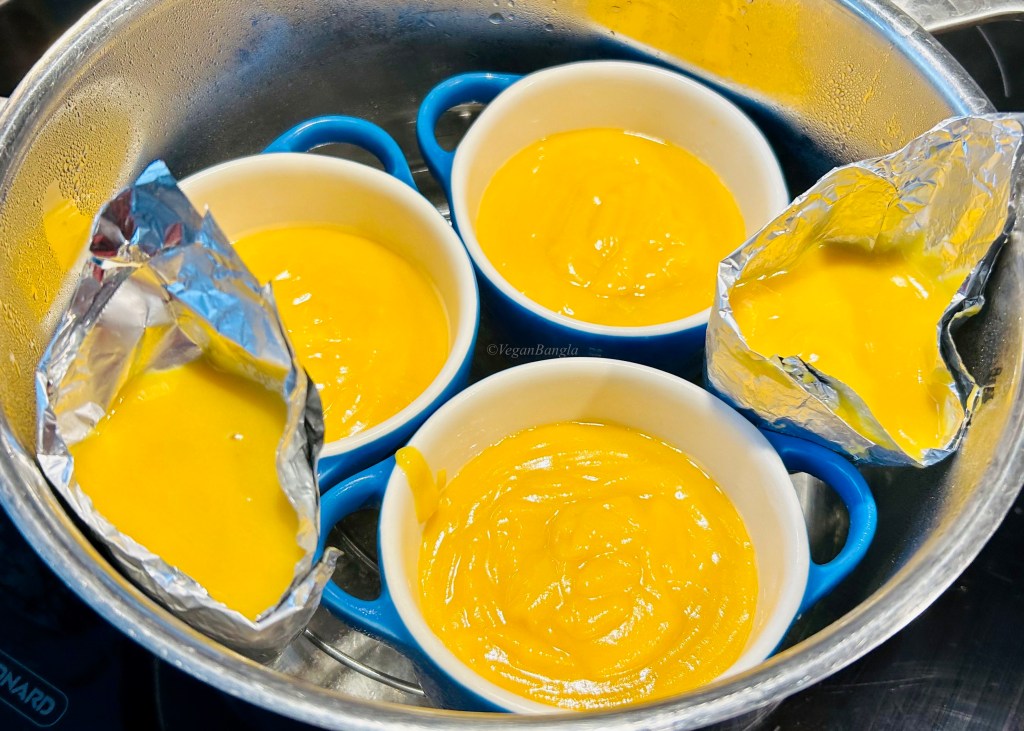 Now it comes to the point of baking the cake. Traditionally this cakes are steamed so I tried to recreate the method by boiling water on a big pot and carefully setting a metal dish rack on the bottom. Then I carefully put the molds filled with cake batter. I had to carefully put the hand-made cones shaped molds so that the batter don’t fall off. Then I covered the pot with lid and baked the cakes for 10 minutes, setting the temperature in low.