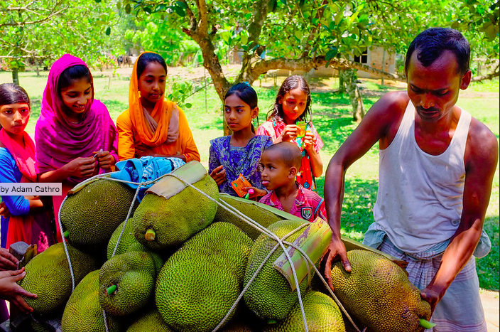 The national fruit of Bangladesh is Jackfruit, which looks almost like famous Durian but way bigger. Jackfruit is mostly eaten as a ripe fruit but it is often eaten as a vegetable when harvested unripe. Nowadays, green jackfruit are a popular vegan option in the world, but in Bangladesh, green/unripe jackfruit are eaten as a curry for centuries. That’s why green jackfruit is called “Gach Patha” (Plant Goat)!